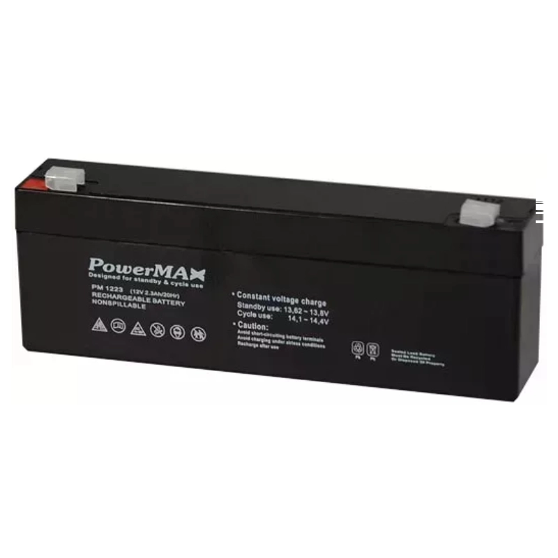 PM1223 to kompaktowy i bezobsługowy akumulator 12 V o pojemności 2.3 Ah, przeznaczony do pracy jako źródło podtrzymania zasilania w centralach alarmowych, modułach automatyki i zasilaczach buforowych. Wykonany w technologii AGM, zapewnia stabilne parametry, wysoką żywotność oraz pełną szczelność konstrukcji – elektrolit jest uwięziony w macie z włókna szklanego, co zapobiega jego wyciekaniu. To rozwiązanie szczególnie polecane w systemach bezpieczeństwa, gdzie wymagana jest pewność działania przy zaniku zasilania sieciowego.