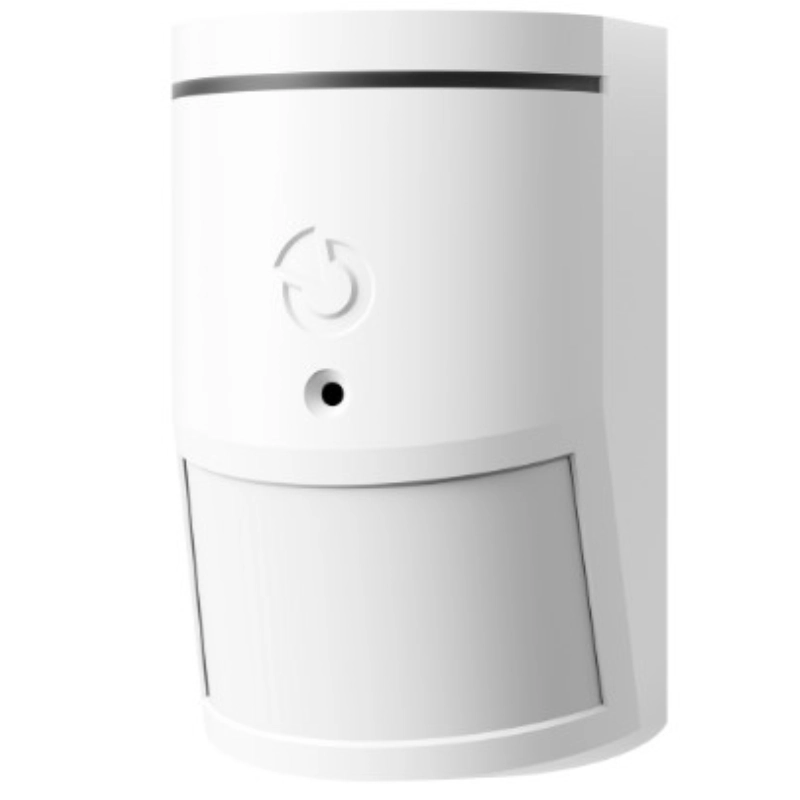 Detektor Ruchu (PIR): Standardowa optyka zapewnia szeroki kąt detekcji 110° i zasięg do 12 metrów, reagując na zmiany temperatury wywołane ruchem człowieka.